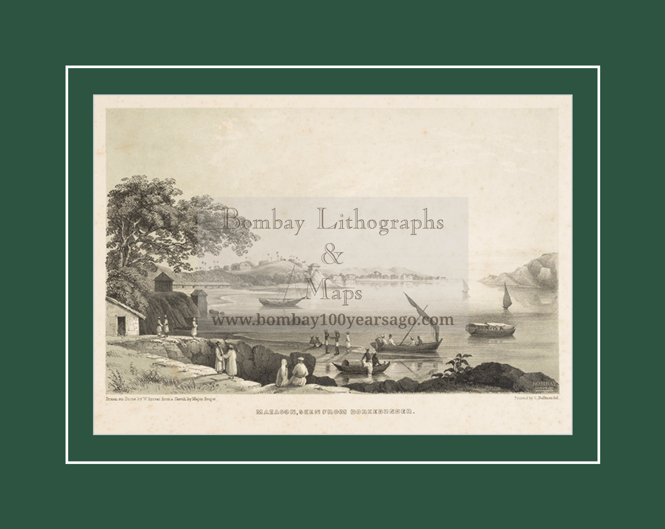 Lithograph- Mazgon Seen from Boreebunder, Bombay
